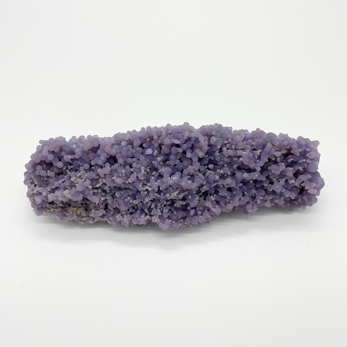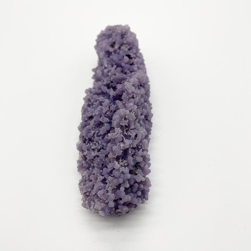 コメント:爽やかなブルー系の色です。どこから見ても綺麗な棒状ですが、特筆すべきは表面の見事さです。大小のベルベット光沢がある粒のほか、小粒の白い水晶が付着しているためキラキラとしていていつまで見ても飽きない標本です。