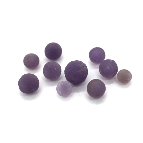 グレープアゲートの中でも「シングルフローター」「グレイン」と呼ばれる、塊になっていない一粒のものをご用意しました。通常の粒は2~3mmですが、今回はすべて特大サイズの4~6mmの色が鮮やかなものをご用意しました。重さベースですと平均で通常品の5倍以上大きな粒になります。
