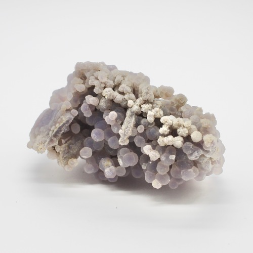 コメント:手のひらサイズのクラスターです。希少なカラーです。ほぼ透明に近い乳白色の球の中心部が紫になっており、芯のように透けて見えます。私も見たことがない色で、採掘者も珍しいと言っていました。