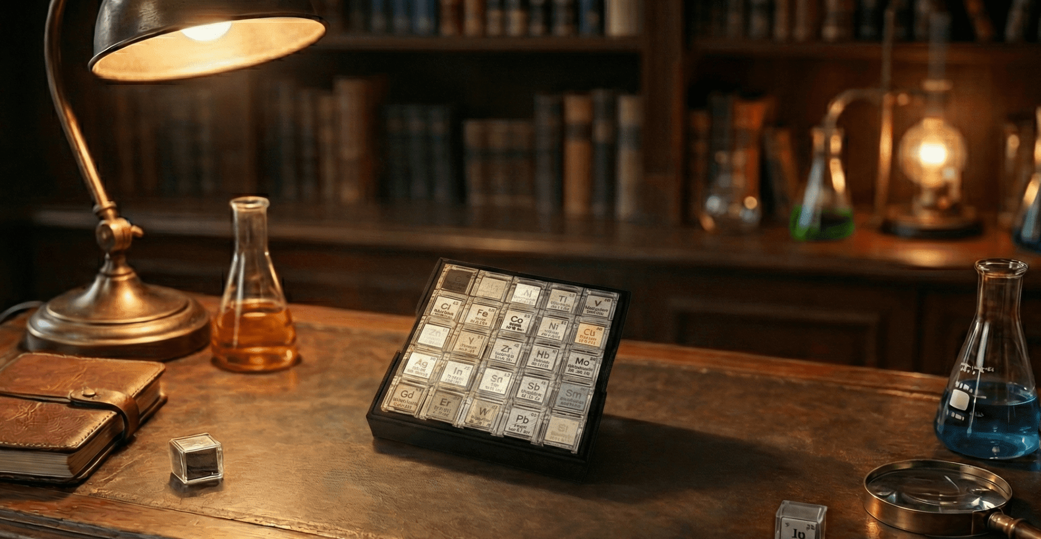 この元素標本キューブは、抽象的な周期表を具体的な体験に変え、子どもの科学への興味を自然に育みます。重いタングステンと軽いアルミニウムの対比、銅の美しい色合い、それぞれの元素の特性を実感することで、教科書だけでは得られない深い理解が生まれます。